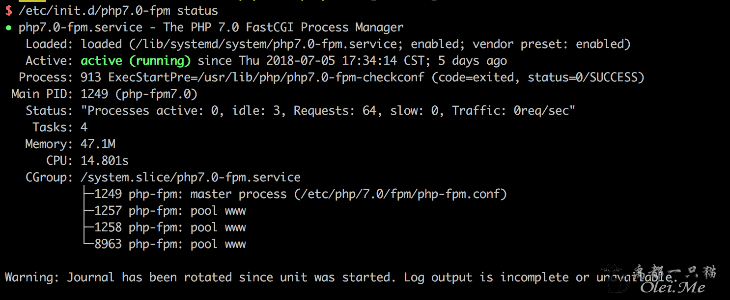 $ /etc/init.d/php7.0-fpm status